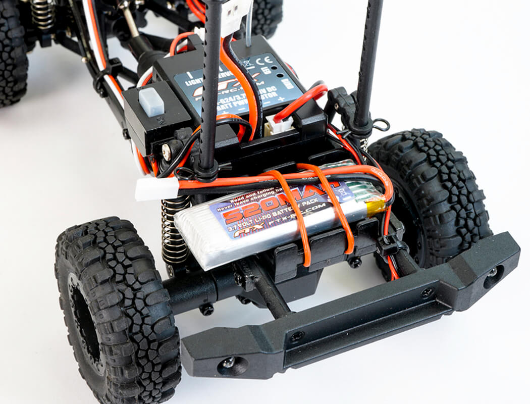 Get ready to tackle your minature off road trail course with the Out-back Mini 3 from FTX. Featuring a modified internal chassis layout of a front mounted motor and upright steering servo, along with a split drive transmission, the Mini 3 takes on inclines like never before. Waterproof electronics means you can use indoors and out. Infact with the factory installed bumper LED lights you can even do some night driving!