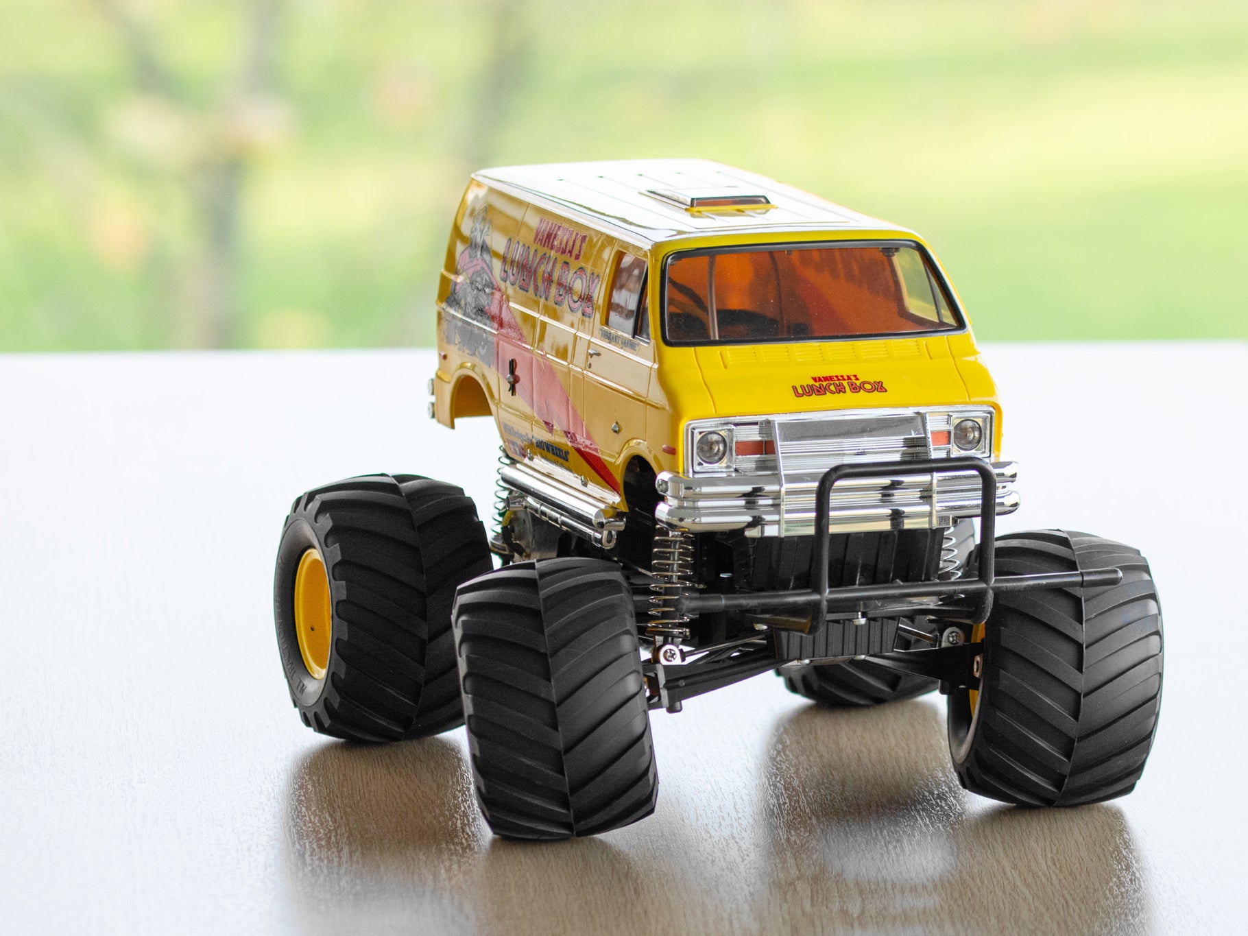 This R/C assembly kit recreates a fun and boxy classic VAN with over-sized monster truck tyres. It is one of Tamiya's classic creations from the 1980s (first released in 1987). It has been a fan favourite for its original appearance as much as for its R/C performance. The boxy minivan body has been raised up over monster truck wheels to ensure that this R/C van will grab attention wherever you choose to drive it.
